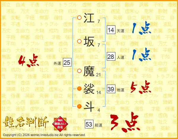 江(7画)坂(7画) 魔(21画)裟(14画)斗(4画)