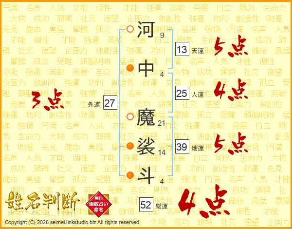 河(9画)中(4画) 魔(21画)裟(14画)斗(4画)