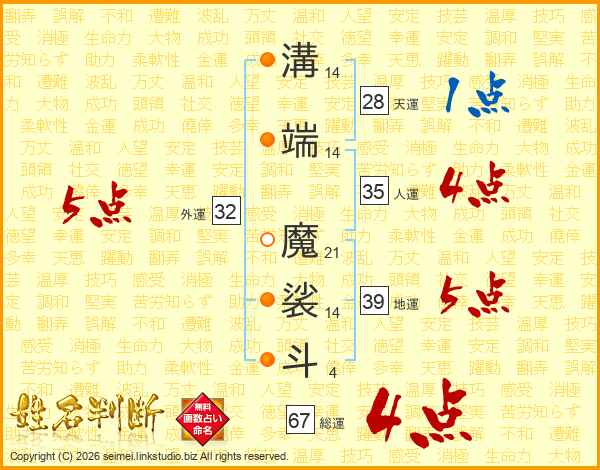 溝端魔裟斗さんの総運は67画の4点!