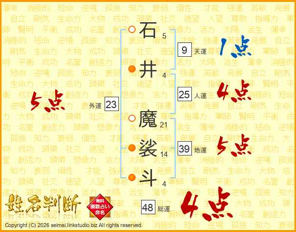 石井魔裟斗さんの総運は48画の4点!
