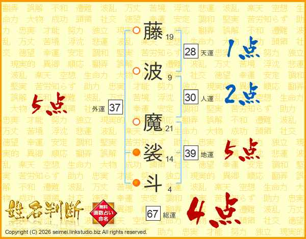 藤波魔裟斗さんの外運は37画の5点!