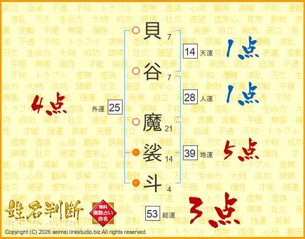 貝(7画)谷(7画) 魔(21画)裟(14画)斗(4画)