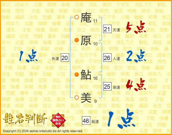 庵原鮎美さんの総運は46画の1点!