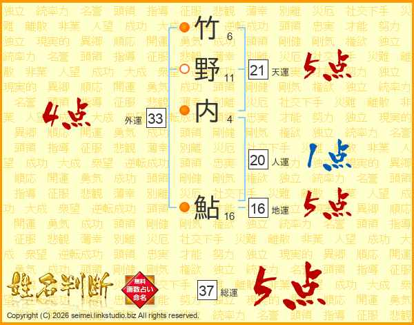 竹(6画)野(11画)内(4画) 鮎(16画)