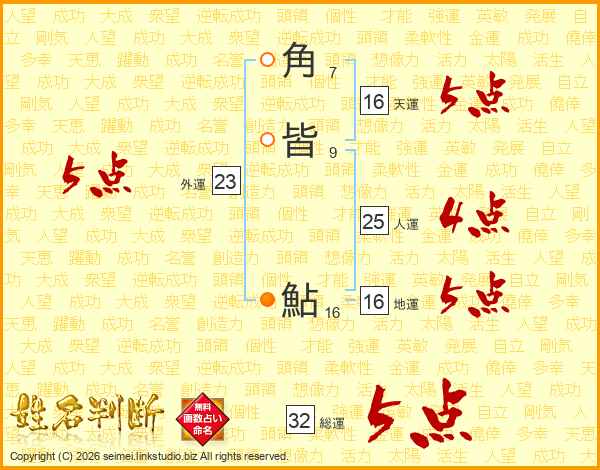 角皆鮎さんの天運は16画の5点!