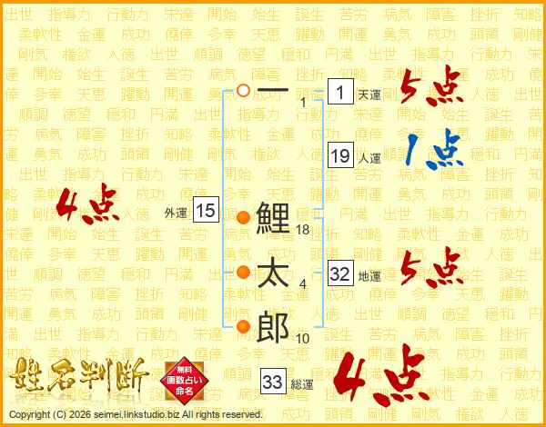 一鯉太郎さんの総運は33画の4点!