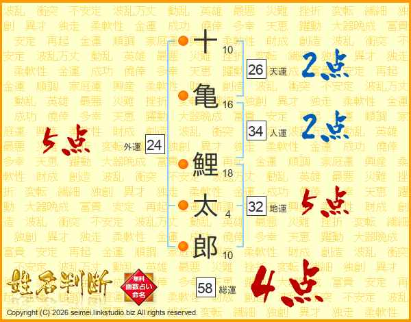 十亀鯉太郎さんの総運は58画の4点!