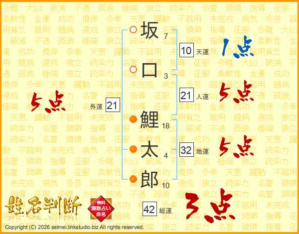 坂口鯉太郎さんの外運は21画の5点!