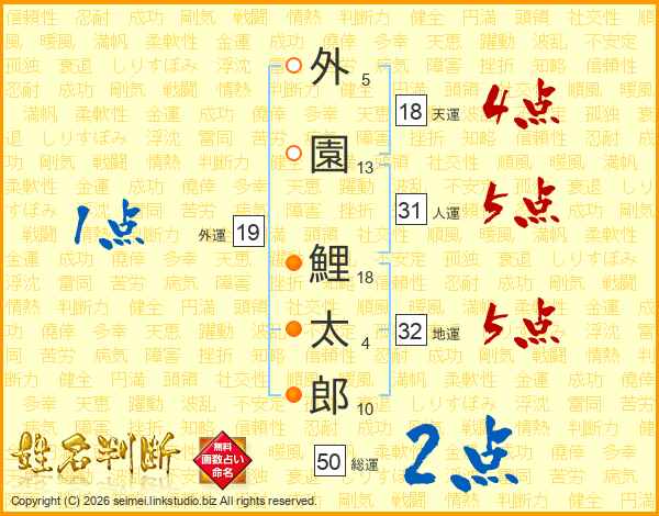 外園鯉太郎さんの天運は18画の4点!
