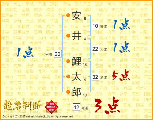 安(6画)井(4画) 鯉(18画)太(4画)郎(10画)