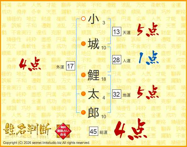 小城鯉太郎さんの総運は45画の4点!