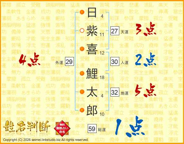日紫喜鯉太郎さんの総運は59画の1点!