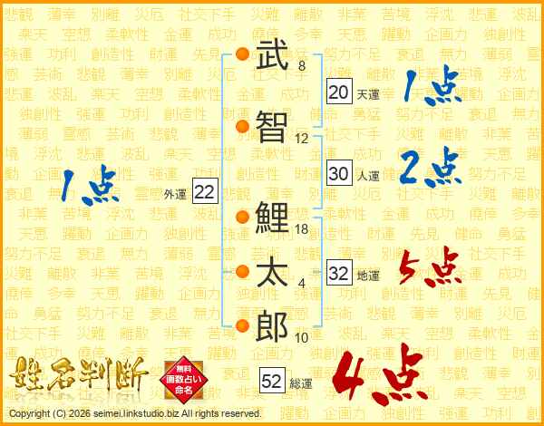 武智鯉太郎さんの総運は52画の4点!