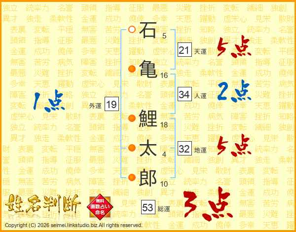 石亀鯉太郎さんの総運は53画の3点!