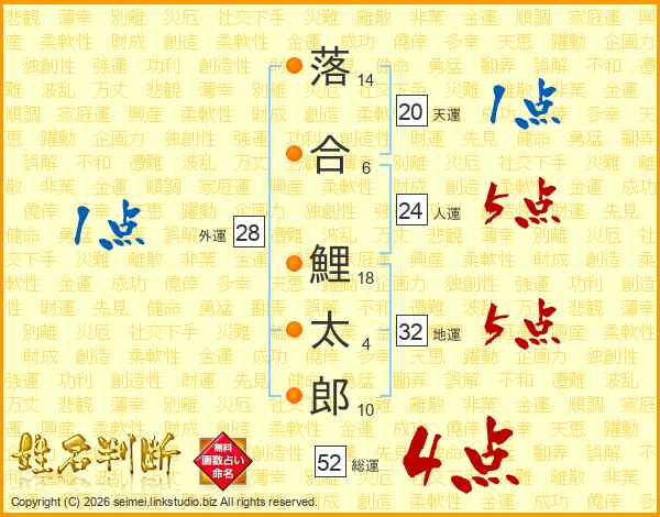 落合鯉太郎さんの総運は52画の4点!