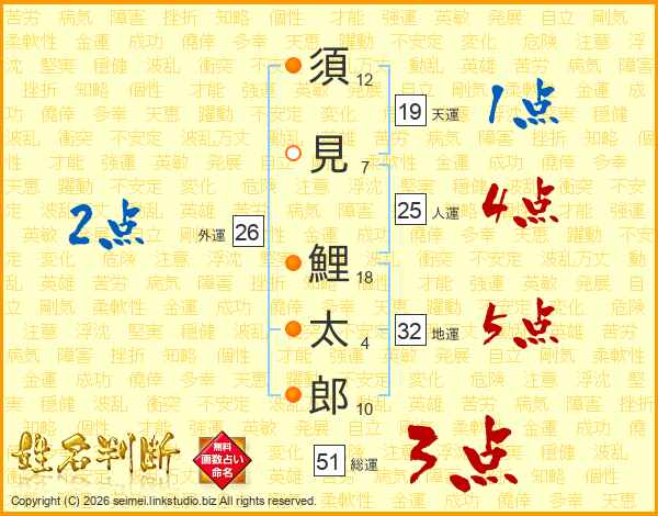 須見鯉太郎さんの総運は51画の3点!