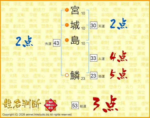宮城島鱗さんの人運は33画の4点!