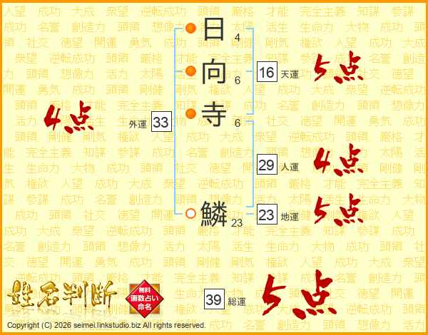 日(4画)向(6画)寺(6画)  鱗(23画)