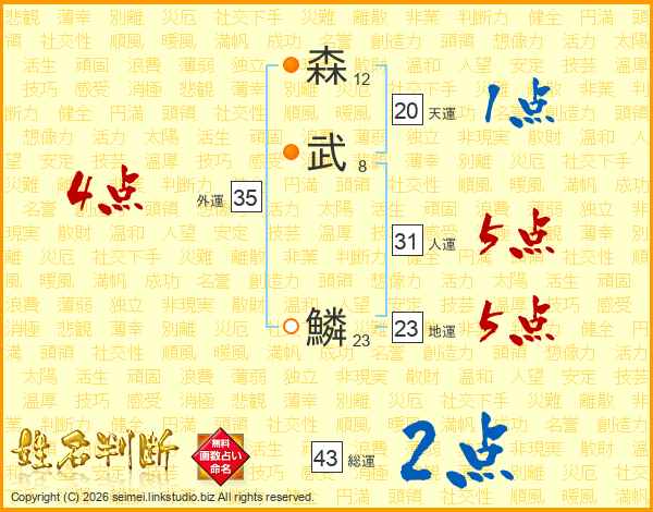 森武鱗さんの総運は43画の2点