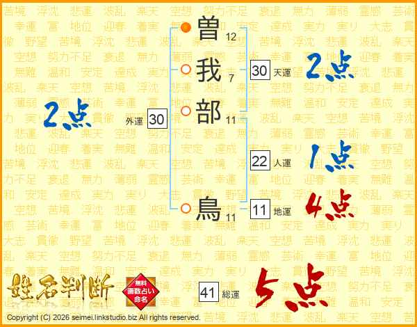 曽我部鳥さんの天運は30画の2点!