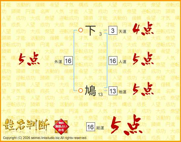 下鳩さんの総運は16画の5点!