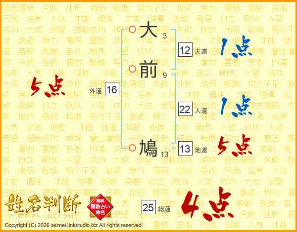 大前鳩さんの総運は25画の4点!
