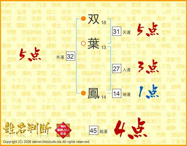 双葉鳳さんの総運は45画の4点!