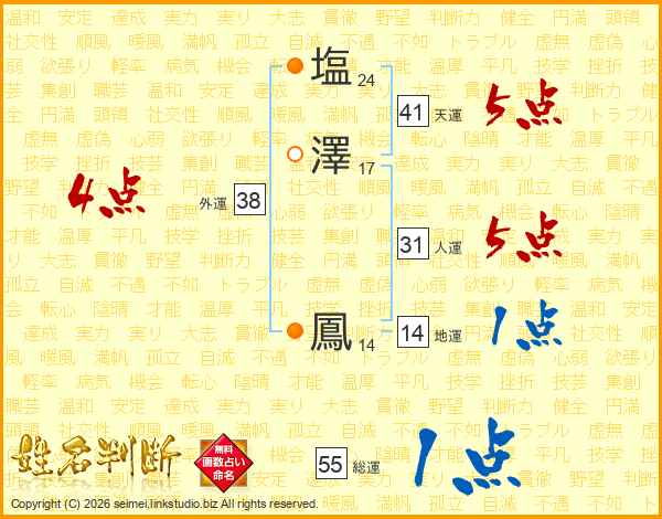 塩澤鳳さんの天運は41画の5点!