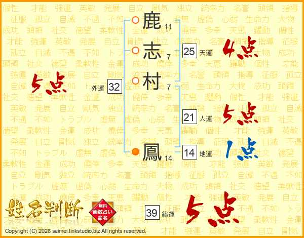 鹿志村鳳さんの外運は32画の5点!