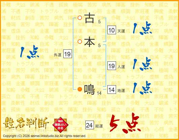 古本鳴さんの総運は24画の5点