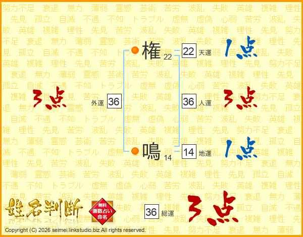 権鳴さんの総運は36画の3点!