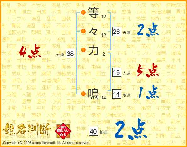 等々力鳴さんの天運は26画の2点!