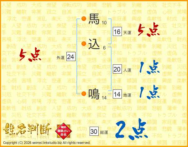 馬込鳴さんの総運は30画の2点!