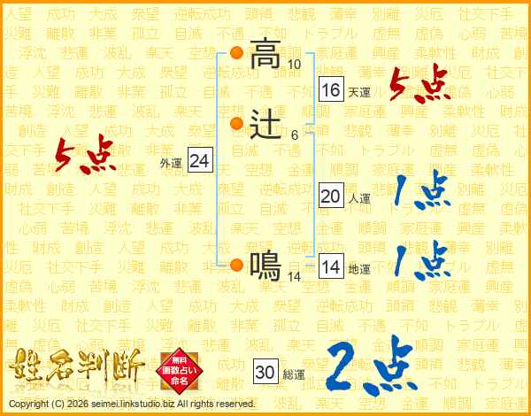 高辻鳴さんの総運は30画の2点!