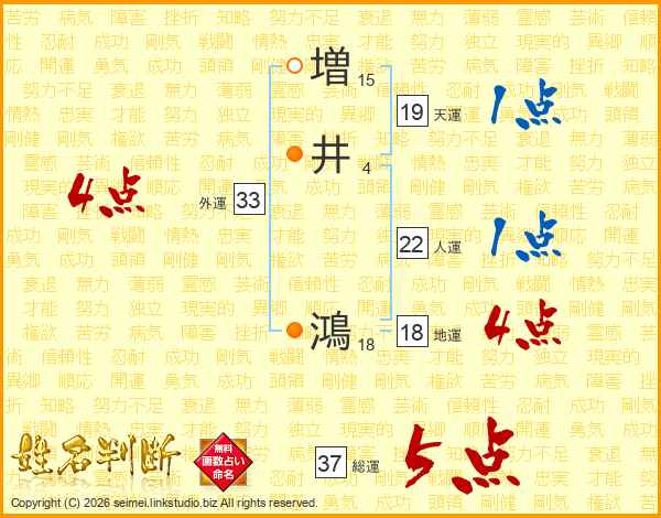 増井鴻さんの総運は37画の5点!