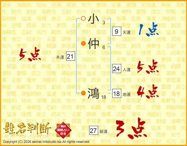 小仲鴻さんの総運は27画の3点!
