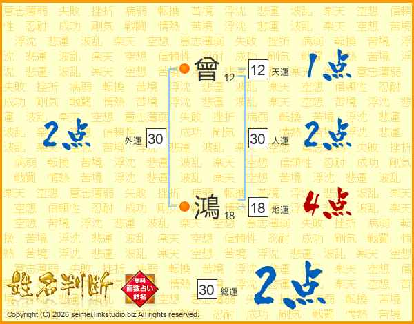 曾鴻さんの総運は30画の2点!