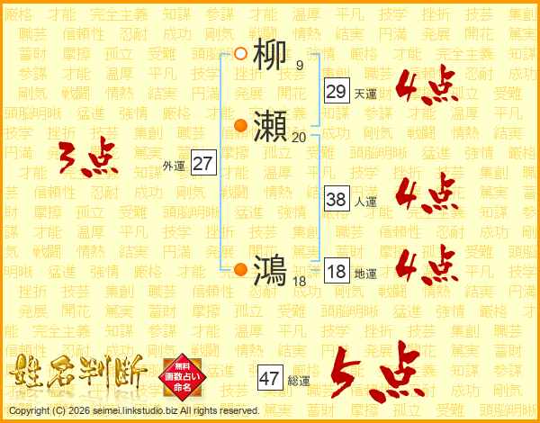 柳瀬鴻さんの総運は47画の5点
