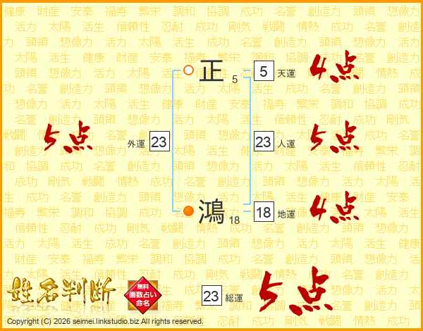 正鴻さんの総運は23画の5点!