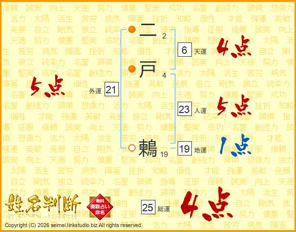 二戸鶫さんの人運は23画の5点!
