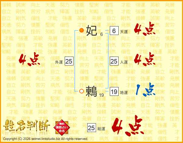 妃鶫さんの総運は25画の4点!