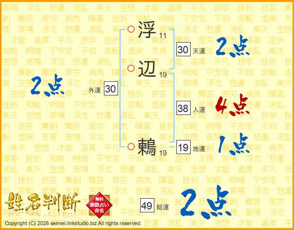 浮辺鶫さんの天運は30画の2点!
