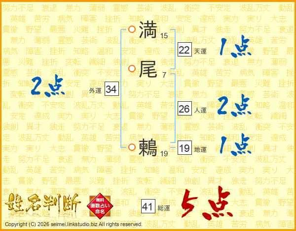 満尾鶫さんの人運は26画の2点!