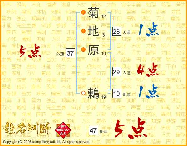 菊地原鶫さんの総運は47画の5点!