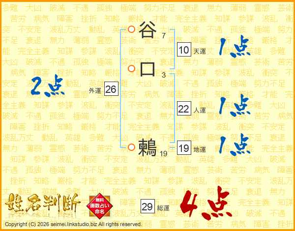 谷口鶫さんの総運は29画の4点!