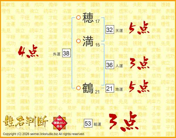 穂満鶴さんの総運は53画の3点!