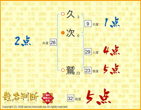 久次鷲さんの総運は32画の5点!