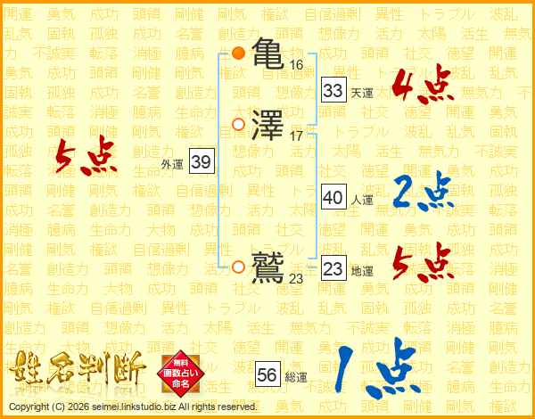 亀澤鷲さんの外運は39画の5点!