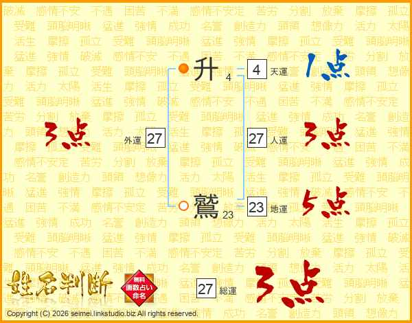 升鷲さんの総運は27画の3点!