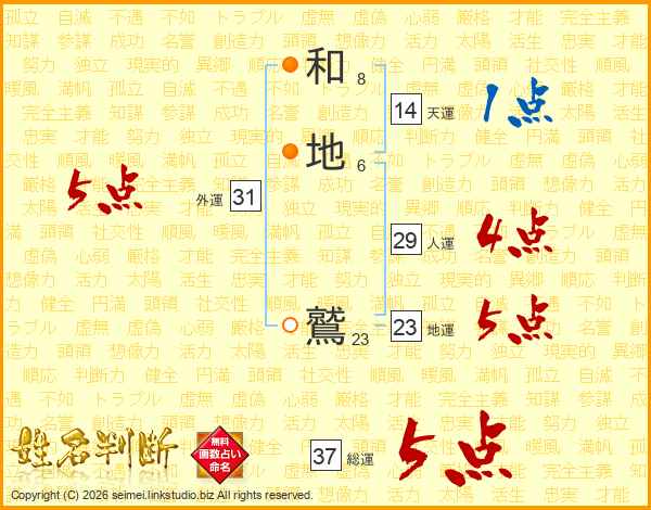 和地鷲さんの総運は37画の5点!